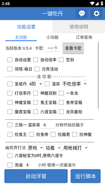 1、下载安装“一键吃丹”App,并授予“悬浮窗权限”及“无障碍服务”(部分功能所需);