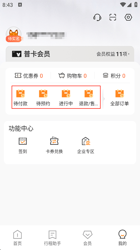4、点进行程助手功能页查看已经付款的订单信息;