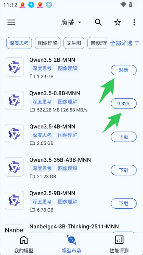 1、本站免费下载安装应用后,您可以在模型市场界面中浏览所有支持的模型