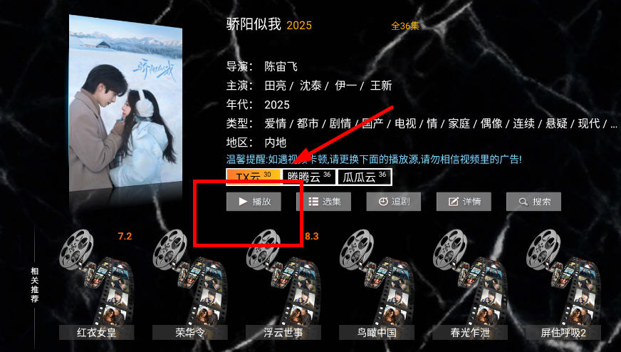 6、点开直接跳转播放,可以调整播放源和观看集数。
