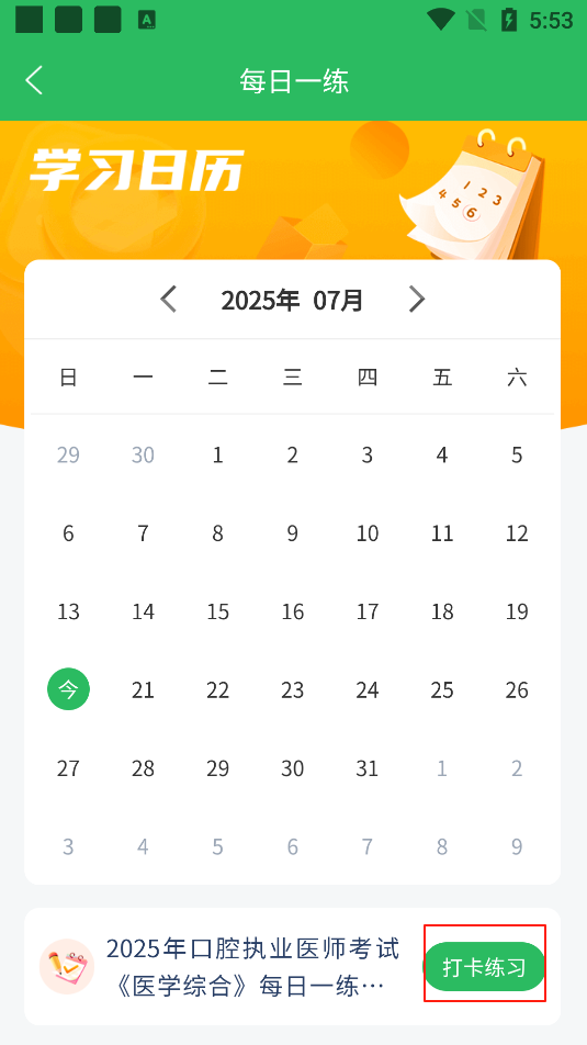 2、选择【每日一练】点击打卡练习