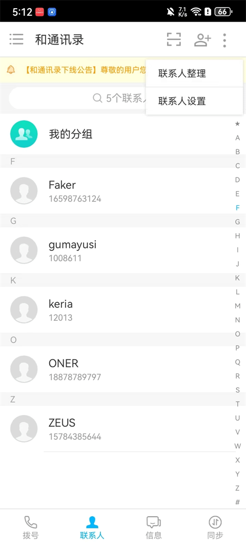 2、联系人:添加/导入联系人、联系人整理/设置。