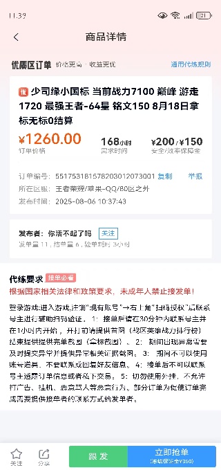 2、在标准大厅中,我们可以看到代练的单子,找到了就可以接单;