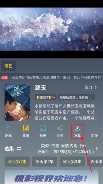3、选择集数点击下载;