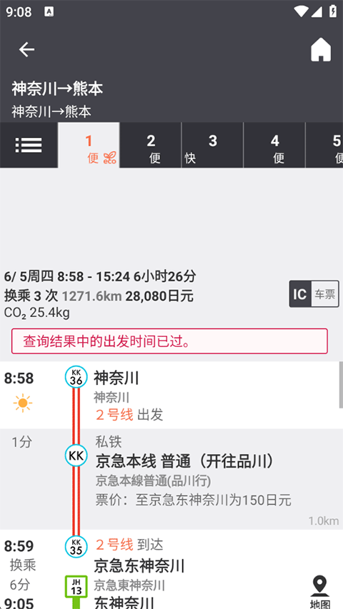 2、票价参考:日本地铁起步价约240日元,巴士230日元,软件会显示总费用。