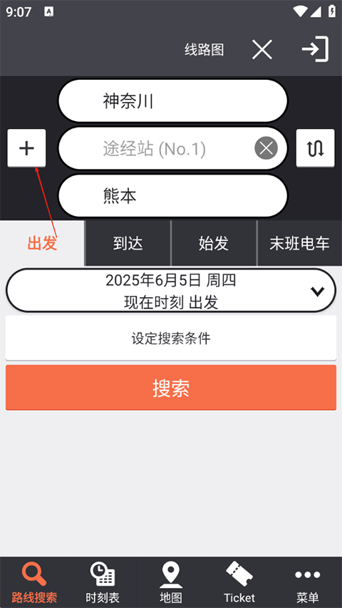 乘换案内起点、终点全中文输入,支持联想功能,方便在相近的日文站名中选择。