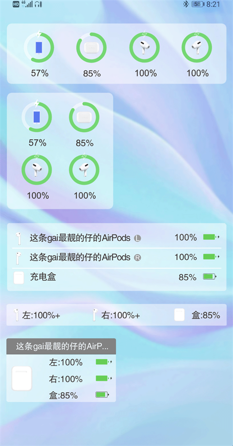 4、实时掌控电量,这款应用是专门为了让用户对Apple AirPods的电量情况进行了解而设计的;