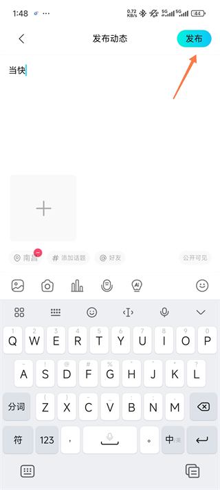 2、输入自己想发的内容,点击发布