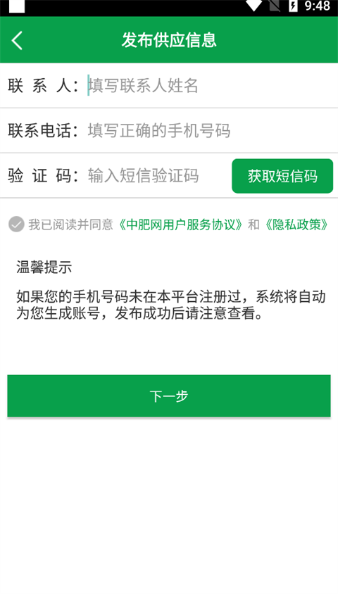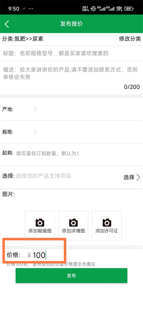 4、填写发布供应信息