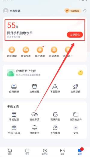 4、个人中心内置手机优化功能,可进行系统清理及性能提升等维护操作。
