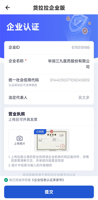 3、填写营业执照上的名称后上传营业执照照片即可提交。