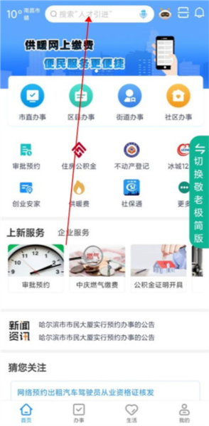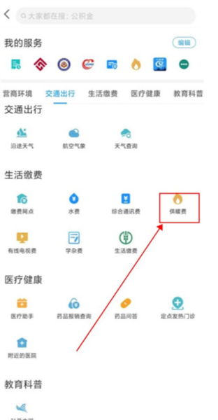 3、或者直接在上面的搜索框当中输入供暖费查找也可以