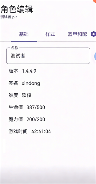 盔甲和配饰:编辑当前穿戴的装备、饰品属性。