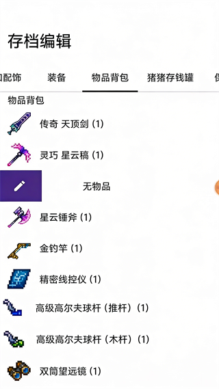 进入「存档编辑」→「物品背包」标签: