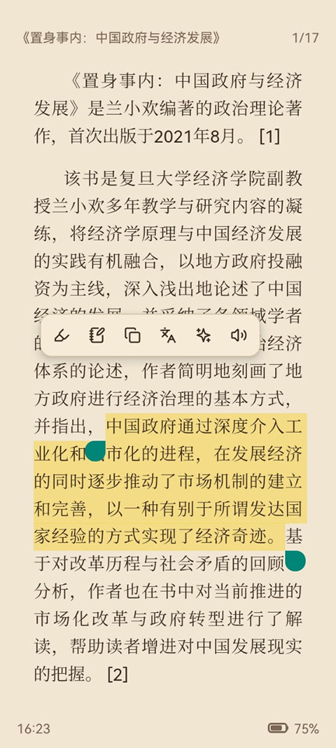 2、导入后就可以打开书籍进行阅读,在阅读时你可以做笔记,进行文字语音播放等功能