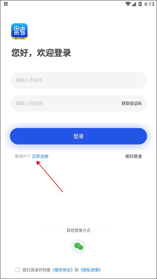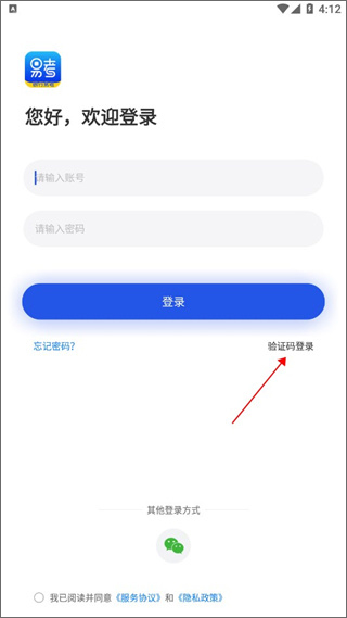 1、打开银行易考app,在登录界面找到验证码登录点击。