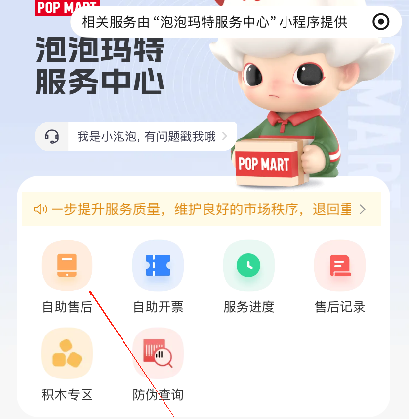 3、提交后,工作人员会在48小时内审核,请注意查收短信通知或查看【泡泡玛特服务中心】小程序售后单进度