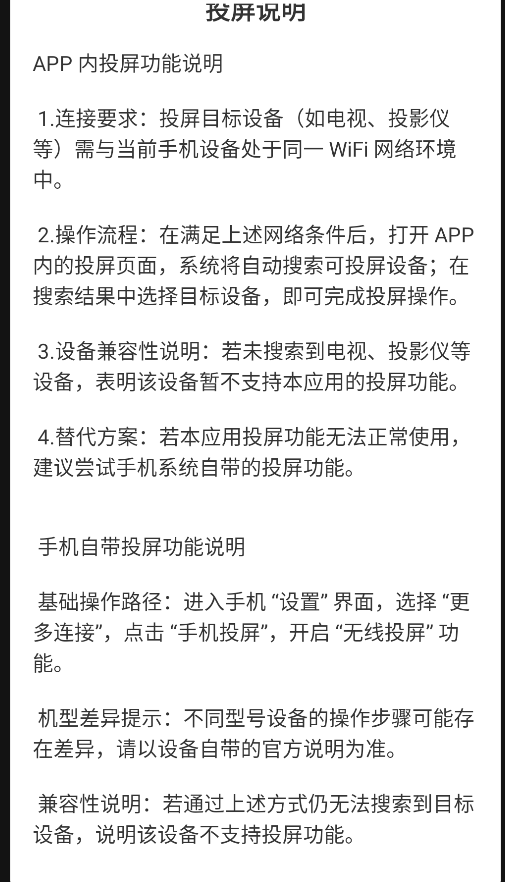 4、以下为投屏说明。