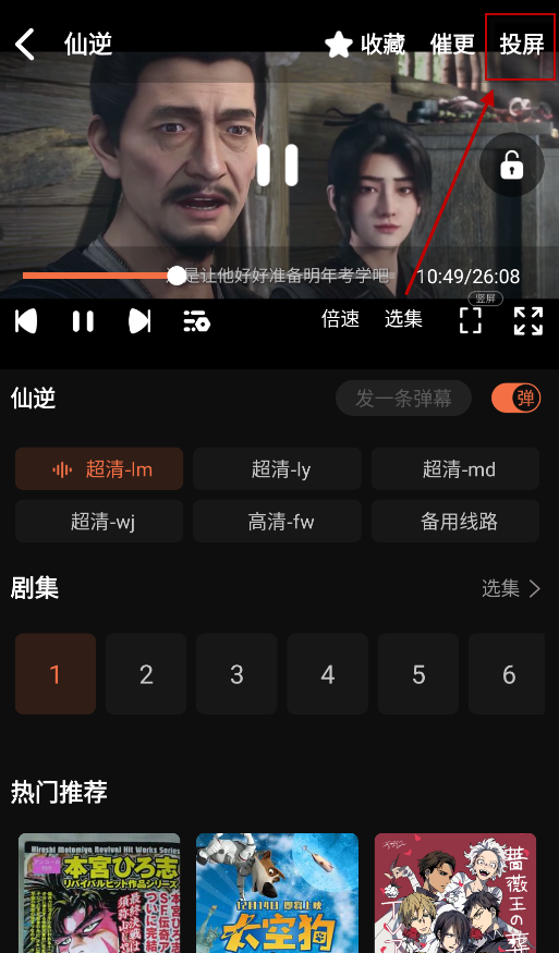 2、然后点击进入播放界面,接着点击右上角的TV图标。