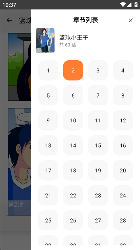 6、点击最后一个图标就可切换漫画话数。