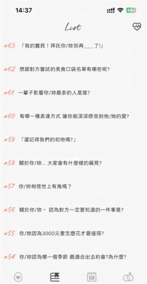 1、Sumone是一款设计软萌的情侣问答日记,它通过一天一个问题的方式,探究、记录爱情轨迹,问题需要双方回答,这能让对象清楚你的真实想法。