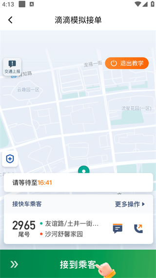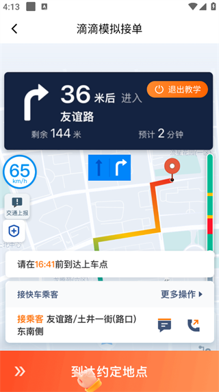 3、接单后按照导航提示前往乘客上车点,抵达后点击到达约定地点。
