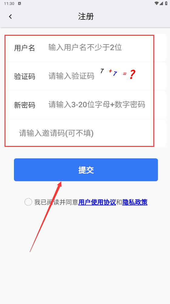 按提示输入相应的信息,点击提交,即可注册成功