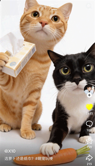 支持与热门角色或好友一键合拍,创作你的有梗剧本视频。