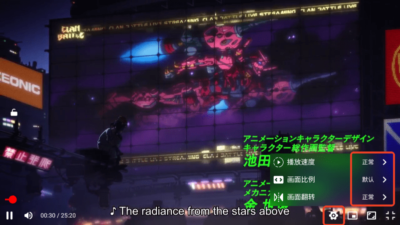 2、在播放页面点击设置图标。