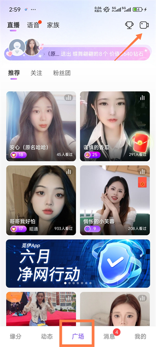 1、点击【广场】在点击右上角的视频图标