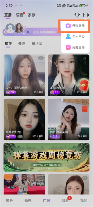 2、选择开直播