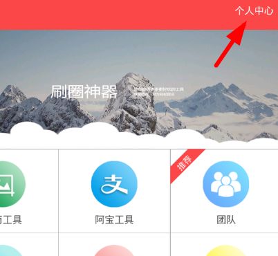 1.打开刷圈兔App,点击右上角的个人中心