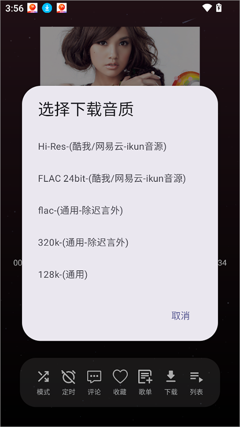 3、下载时支持不同音源、音质的音乐文件进行免费下载