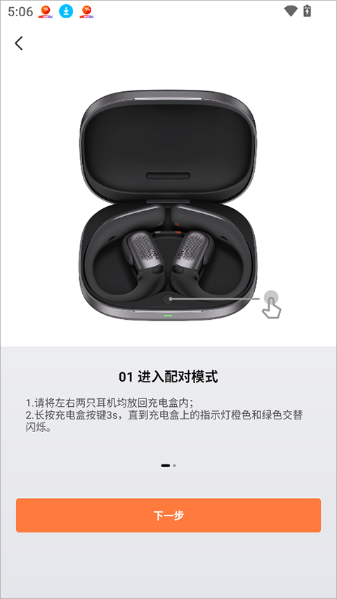 2、然后开启耳机,打开手机蓝牙后,app就会自动搜索耳机设备