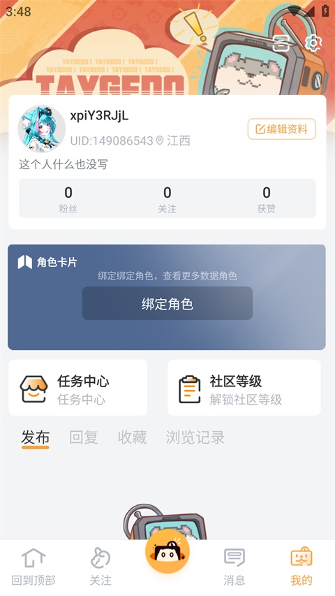 1、登录游戏账号后,进入App“我的”板块,点击绑定角色;