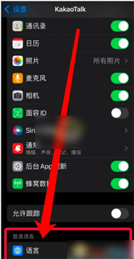 1、打开手机设置,划动并找到“kakaotalk”点击