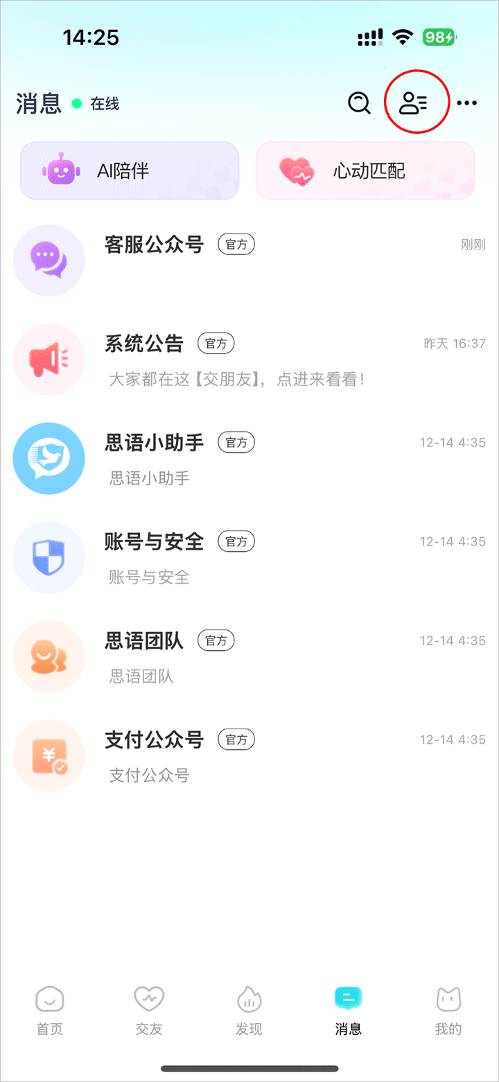 智能一键匹配找到兴趣相投的人,拓展社交圈,结识新朋友~