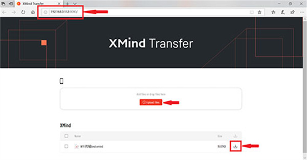 4、会出现地址,再在电脑端打开浏览器,访问XMind app上的地址;