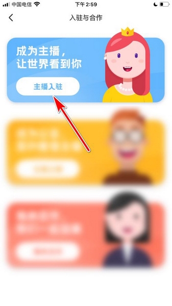 点击主播入驻的按钮。