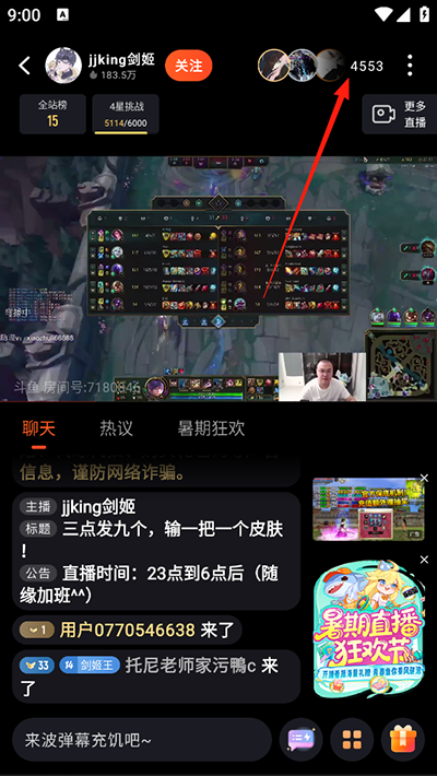 2、进入直播间,点击右上角三个点。
