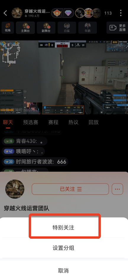 2、然后再次点击【已关注】,就会出现设置特别关注和设置分组,选择特别关注就可以了!