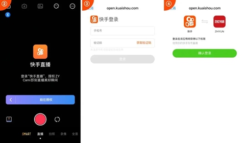 2、想用快手播的话,就先点「快手直播」,然后点「前往授权」。如果你手机里装了快手,它会自动跳过去让你登录授权。没装的话会引导你去登录页面,整个过程跟着提示走就行。