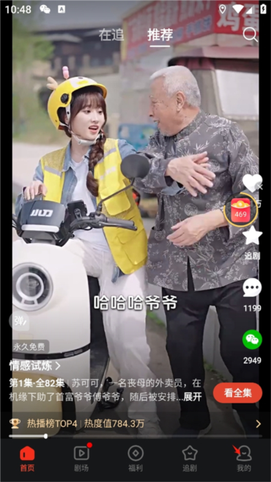 3、短剧封面右下角的+追按钮可以把短剧加入在追列表,在主页就能快速找到。