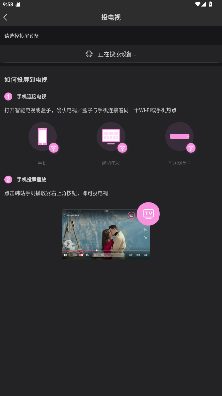 3.确保手机和电视处于同一wifi环境。搜索电视设备名称,连接即可。