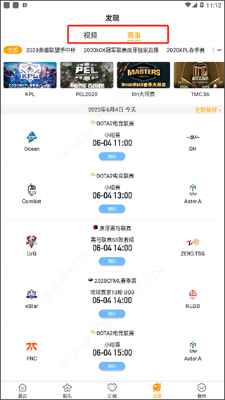 4、“发现”中主要是各种游戏视频和赛事内容;