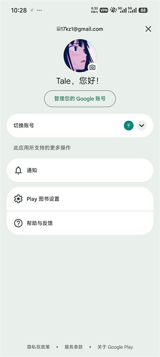 4、之后来到下方界面可以看到国家/地区和个人资料选项,因为这里已经更改为香港地区,所以就大致说下步骤,一般点击下方的切换到xx(地区) play商店,然后填写一些居住资料、个人信息资料即可(邮编之类的可以自己查询,居住地址可以填写当地酒店之类的),更改完成之后google系软件都会同步更改,例如谷歌图书、谷歌游戏以及应用商店。